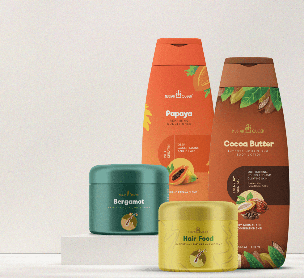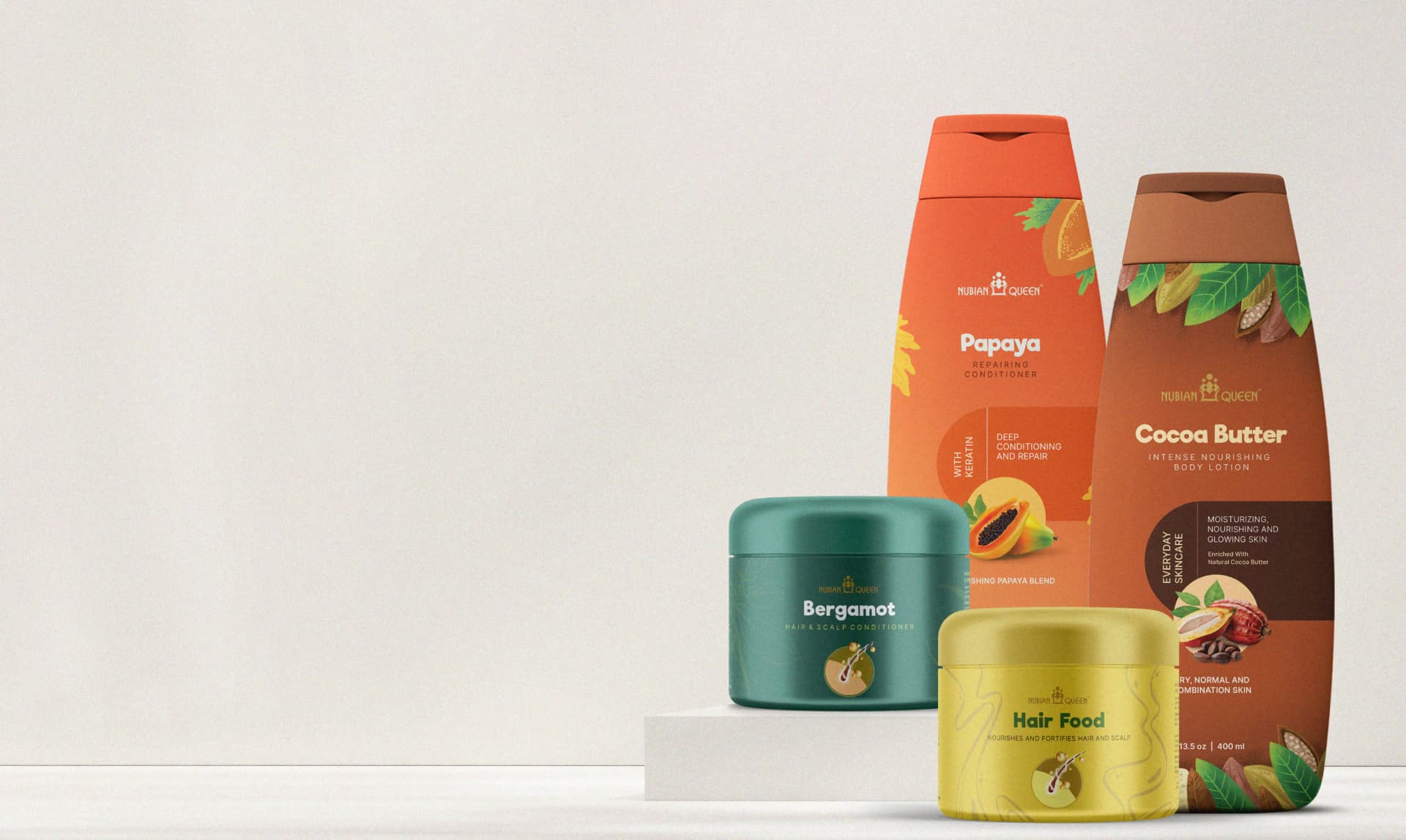 For the African market, we designed the packaging using vibrant natural tones, while the designs for the European audience reflected minimalist hues. This approach helped us highlight Nubian Queen's core identity through design.