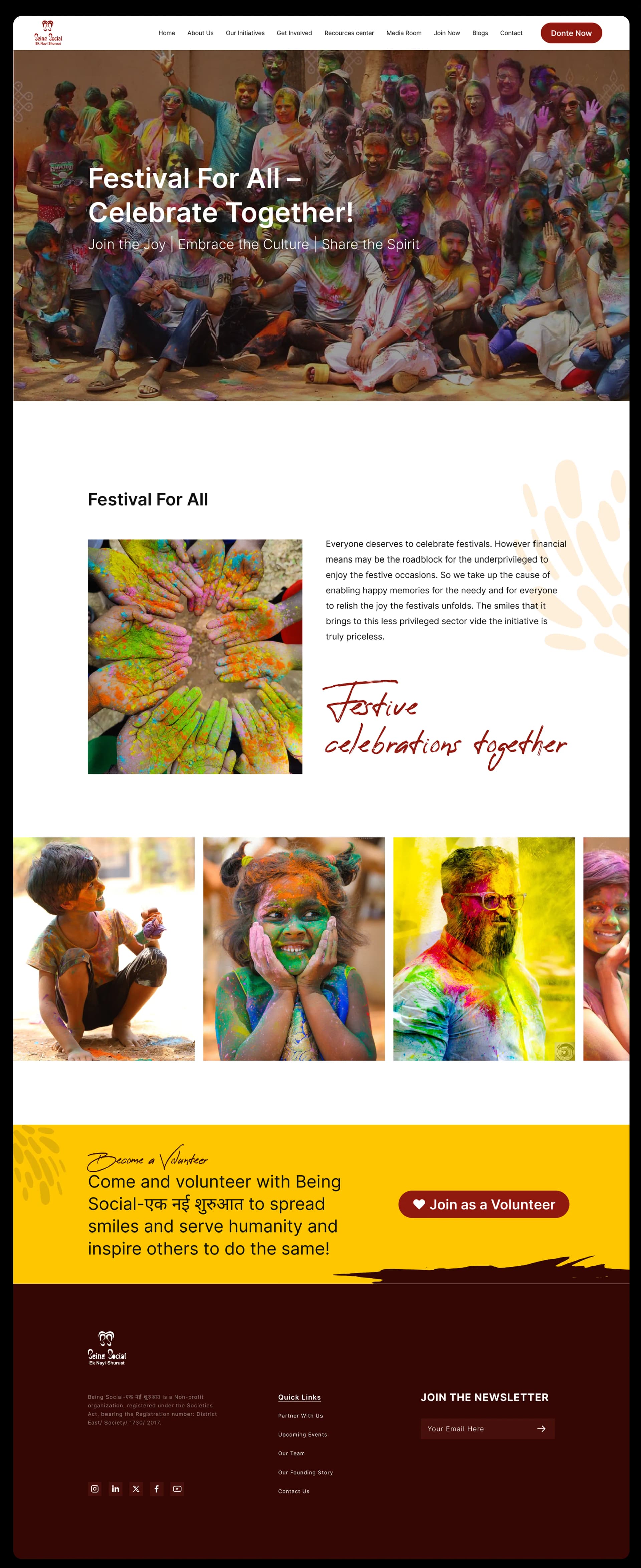 Being Social-Ek Nayi Shuruaat is a registered non-profit (Reg. No. District East/Society/1730/2017) committed to uplifting the underprivileged and protecting the environment. The organization works and focuses on healthcare, education, skill development, and disaster relief to spread smiles and serve humanity. It is a group of impassioned changemakers wedded by a profound vision - Spread Smiles, Serve Humanity. Their mission is to empower the marginalized and underprivileged, providing them with the voice, dignity, opportunities, and resources essential to shape a brighter future for themselves and their communities.